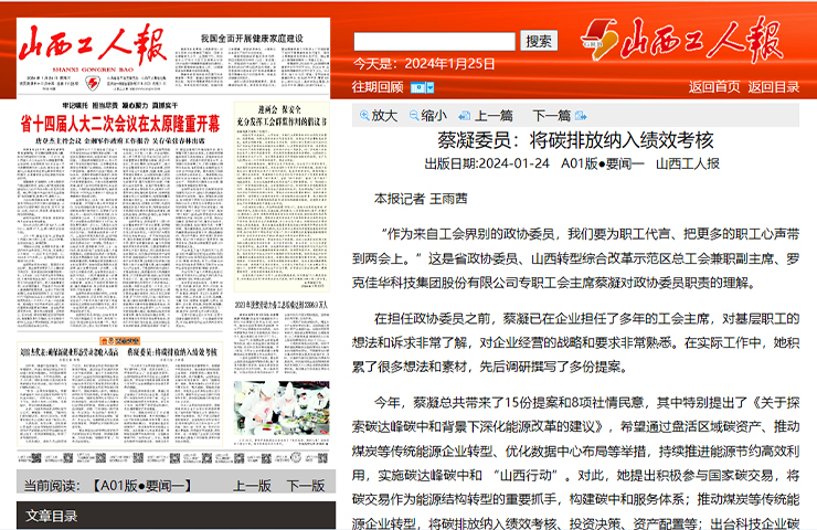 5?20丨《太原日報》頭版頭條報道佳華:AI加持 激發(fā)綠色新動能